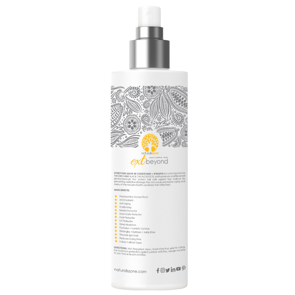 Naturalszone Extbeyond Leave-in Conditioner + Cacao is an extraordinary anti-aging hair care product that prevents your hair from showing signs of aging and helps reduce the aging of your hair and scalp using the effect of cacao, preventing damage that can cause premature aging and many of the modern health conditions that affect hair.
